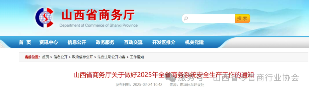 山西省商务厅关于做好2025年全省商务系统安全生产工作的通知