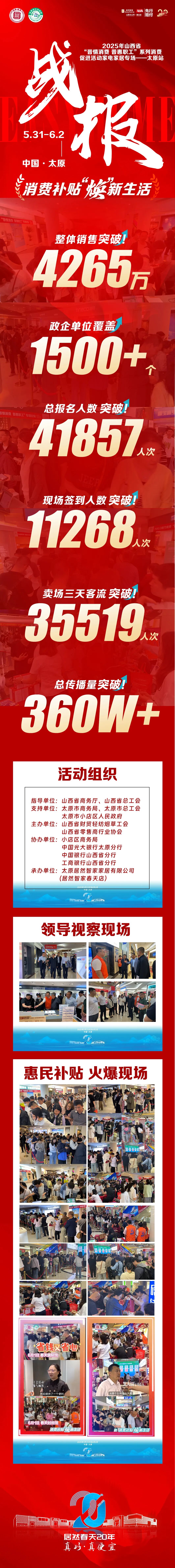 5月31日—6月2日,由山西省商务厅、山西省总工会指导,山西省财贸轻纺烟草工会联合山西省零售商行业协会主办的“消费补贴 焕新生活”——2025年山西省“晋情消费 惠民补贴”系列消费促进活动家电家居专场(太原站)在居然之家春天店盛大开启。本次活动旨在通过政企银多方联动,以实实在在的补贴和优惠,为广大消费者带来一场家电家居购物盛宴。