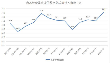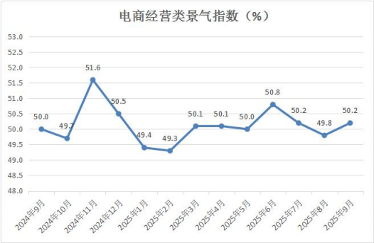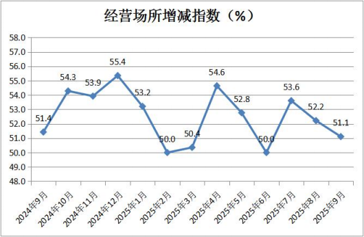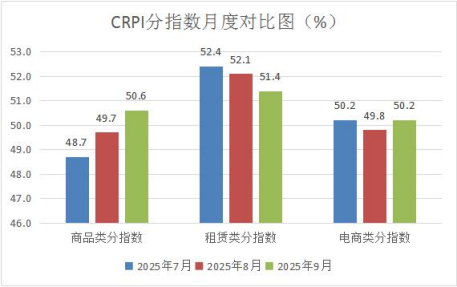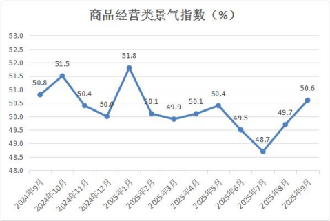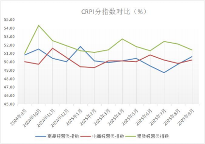 2025年9月6日,中国商业联合会发布9月份中国零售业景气指数(CRPI)。9月份,中国零售业景气指数(CRPI)为50.6%,较上月上升0.5个百分点,连续2个月上升,创近8个月新高;三大类分指数的绝大多数指标本月均处于扩张区间。商品经营类指数为50.6%,环比上升0.9个百分点;租赁经营类指数为51.4%,维持在中高位景气区间;电商经营类指数为50.2%,环比小幅上升0.4个百分点,重回扩张区间。分析认为,以上数据预示零售业全方位向好的趋势已经呈现。从行业分类看,9月零售业三大分类指数均处于扩张区间。商品经营类指数为50.6%,较上月上升0.9个百分点,线下消费继续回升;租赁经营类指数为51.4%,较上月下降0.7个百分点,维持在中高位景气区间;电商经营类指数为50.2%,较上月小幅上升0.4个百分点。商品经营类指数为50.6%,较上月上升0.9个百分点。构成商品经营类CRPI的3个正向分指数销售额、盈利水平和客单价水平都处于临界点以上,1个反向分指数主营运营成本处于临界点以下,呈现良好的经营态势。分析认为,随着暑期结束,9月份全国迎来开学季,学生和家长的商品消费需求增多,线下商品零售进入旺季,各地以旧换新补贴政策调整更新,商品经营类企业的各项景气指标明显好转。销售额指数为52.6%,较上月上升1.7个百分点,创近8个月新高。分析认为,9月份线下商品零售预期明显好转,是受开学季、节庆活动采购和第三批以旧换新补贴资金到位等多重因素驱动。盈利水平指数为52.4%,较上月回升2.4个百分点,创8个月新高,表明商品经营类企业对9月份的盈利预期较好。客单价水平指数为52.1%,较上月大幅上升3.0个百分点。分析认为,在宏观货币政策适度宽松的背景下,开学季、节庆活动和秋装上市等因素促使商品经营类企业客单件水平大幅上升。主营业务运营成本反向指数为47.1%,较上月下降1.3个百分点,表明商品经营类企业预期运营成本有所上升。租赁经营类指数为51.4%,较上月下降0.7个百分点,维持在中高位扩张区间运行。构成租赁经营类CRPI的3个正向分指数平均单店租金收入、商铺出租率和运营场所增减处于临界点上方,1个反向分指数综合运营成本变化处于临界点下方。但与 2024年同比,整体下降的趋势已经形成。平均单店租金收入指数为53.3%,较上月下降0.9个百分点,但仍维持在高位景气区间,表明租赁经营类企业租金收入水平预期良好。商铺出租率指数为51.4%,较上月大幅下降3.0个百分点。分析认为,随着暑期消费热潮结束,商业综合体的商铺出租热度出现降温。同比去年第三季度,商铺出租率指数平均下降0.7个百分点,整体偏低。经营场所增减指数为51.1%,较上月下降1.1个百分点,表明租赁经营类企业开店增速预期持续下降。综合运营成本反向指数为49.7%,较上月上升1.4个百分点,表明租赁经营类企业运营成本压力有所缓解。电商经营类指数为50.2%,较上月小幅回升0.4个百分点,重回扩张区间。构成电商经营类CRPI的 3个正向分指数电商实物总销售额、电商在线总商品数、电商客单价水平和1个反向分指数电商经营总成本均处于临界点以上。电商实物总销售额指数为50.2%,较上月回升1.3个百分点,重回扩张区间,表明本月线上商品零售额增长预期回升。电商在线总商品数指数为50.0%,较上月回升0.8个百分点,结束4个月的下降趋势,重回荣枯线,表明本月电商经营类企业备货意愿正在企稳回升。电商客单价水平指数为50.1%,较上月下降0.9个百分点。电商总成本反向指数为50.2%,较上月微降0.2个百分点,表明电商经营成本相对稳定。(一)CRPI三个分指数对比显示,9月份零售业景气指数趋好,其中商品经营类指数升幅更高。(二)9月份商品经营类企业的数字化转型投入指数为53.1%,环比上升2.1个百分点。(三)9月份商品经营类企业的在岗人员数量指数为48.4%%,环比下降1.9个百分点。中国零售业景气指数(CRPI)是反映当期零售业经营预期变化情况的综合指数。CRPI高于50%时,反映零售业总体较上月扩张;低于50%,则反映零售业总体较上月收缩。CRPI是通过对中国零售业运营经理的月度调查结果统计汇总、编制而成的指数,它包括消费领域商品类、租赁类和电商类3类零售企业/平台,涵盖了客流量、销售额、租金收入、客单价等多个重要指标,是零售业先行性景气指数的最新探索。涉及国家标准《零售业态分类》(GB/T18106-2021)中的3个行业大类,50个品牌集团企业,3000多家调查样本,涵盖20000多个零售门店经营状况变化情况:其中,商品类、租赁类和电商类零售企业样本权重分别约占64%、16%、20%。以经营超市、便利店、百货店、折扣店、仓储会员店、品牌专卖店、专业店等有店铺零售为主的零售企业界定为商品类;以经营各类型购物中心为主商业管理企业界定为租赁类;依托电子商务平台经营商品服务为主的零售企业界定为电商类。零售业运营经理月度调查借鉴PPS(Probability Proportional to Size)抽样方法,以商品类、租赁类、电商类零售业大类为层,大类样本按其销售额占零售业消费品总额的比重分配,层内样本使用具有整体和地域代表性的企业样本。本调查由中国商业联合会具体组织实施,利用在线问卷对零售业运营经理进行月度问卷调查。(1)分类指数的计算方法。零售业景气指标体系包括12个细分指数,表征零售业各细分领域发 展的景气状况、发展潜力与政策支撑环境。零售业景气指标体系中,商品类包括消费额、客单价、