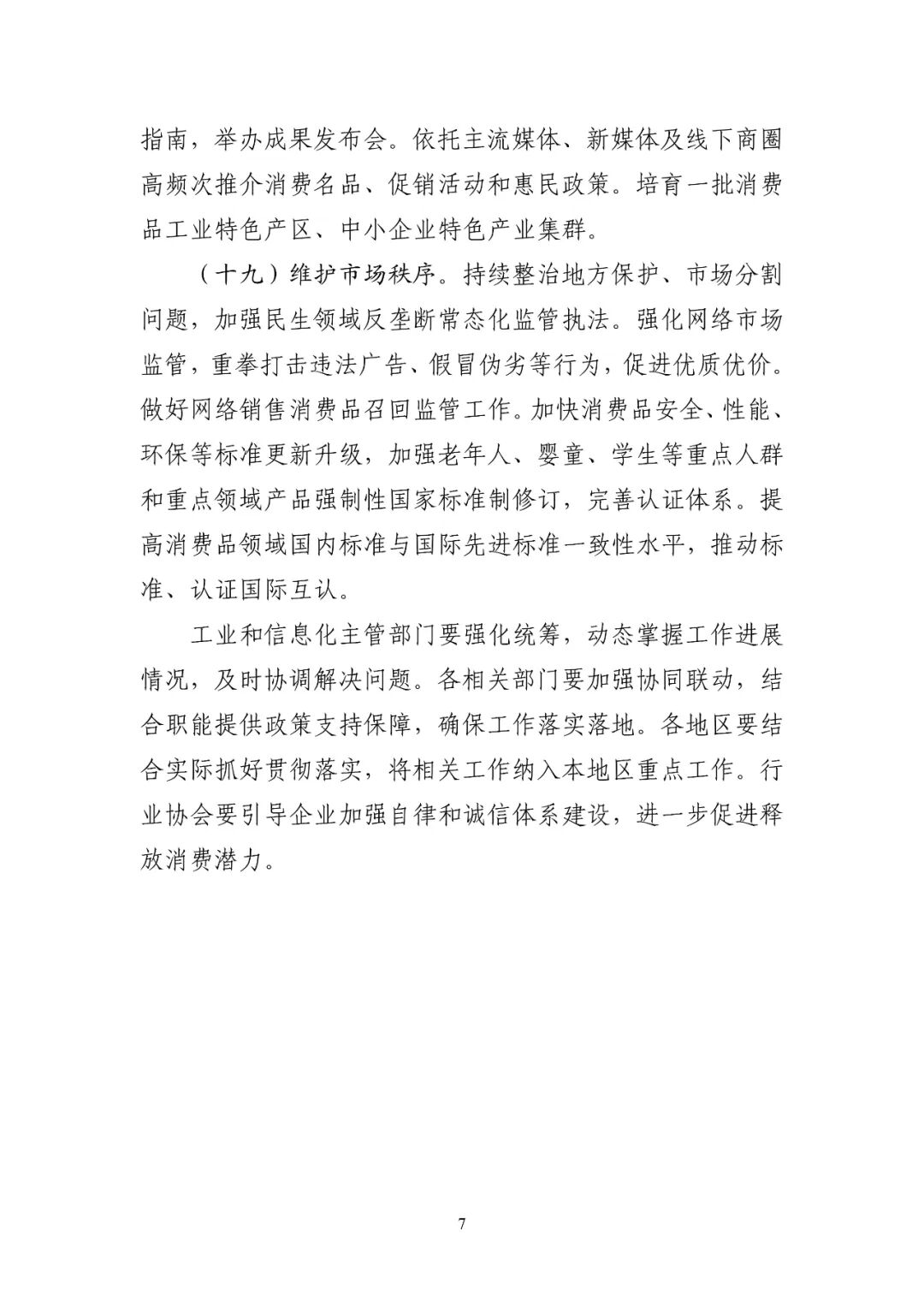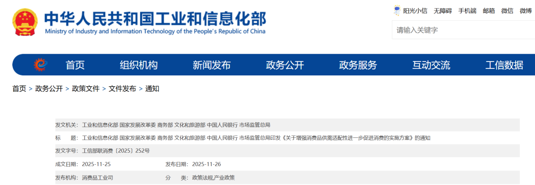 为贯彻落实党中央、国务院关于大力提振消费的决策部署,工业和信息化部等六部门制定了《关于增强消费品供需适配性进一步促进消费的实施方案》,经国务院同意,现予印发,请认真组织实施。