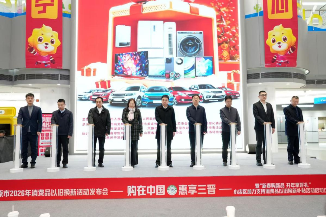 为深入贯彻落实国家关于推动大规模设备更新和消费品以旧换新的决策部署,进一步激活消费市场、释放内需潜力,由太原市人民政府、小店区人民政府联合主办的“购在中国 惠享三晋”太原市2026年消费品以旧换新活动发布会暨“新春购新品 开年享好礼”小店区加力支持消费品以旧换新补贴活动启动仪式,于2026年1月16日上午在太原市小店区苏宁易购Max一层中厅隆重举行。本次启动仪式旨在全面动员部署全市以旧换新工作,汇聚政府、行业、企业、金融及媒体多方力量,共同推动家电、3C、汽车等重点消费领域升级换代,进一步优化消费供给、提升消费能级,为省城经济高质量发展注入新动能。 自2025年以来,山西省零售商行业协会坚决贯彻省委、省政府促消费、稳增长的工作要求,在省商务厅的统筹指导下,主动担当、积极作为,深度参与全省手机及3C产品以旧换新数据采集、标准制定与流程协调工作,切实发挥了行业组织的专业职能与桥梁作用,为相关政策落地实施提供了有力支撑。进入2026年,协会将继续以高标准、严要求、实作风投身新一轮消费品以旧换新工作。我们将进一步强化组织引领,凝聚行业共识,引导会员企业规范经营、诚信服务,协同推进线上线下融合、回收拆解配套、消费者权益保障等关键环节,确保国家惠民政策精准传导、高效落地,助力构建绿色、循环、可持续的消费生态。本次启动仪式标志着太原市年度促消费重磅活动正式启幕。山西省零售商行业协会将以此次参会为契机,继续与各方通力协作,整合行业资源,优化消费环境,为推动我省消费市场提质扩容、实现更高水平供需动态平衡贡献专业力量。出席此次活动的领导有太原市人民政府副秘书长师中军、太原市商务局总经济师乔旭辰、小店区人民政府副区长郭丽河及各主要部门负责人。
