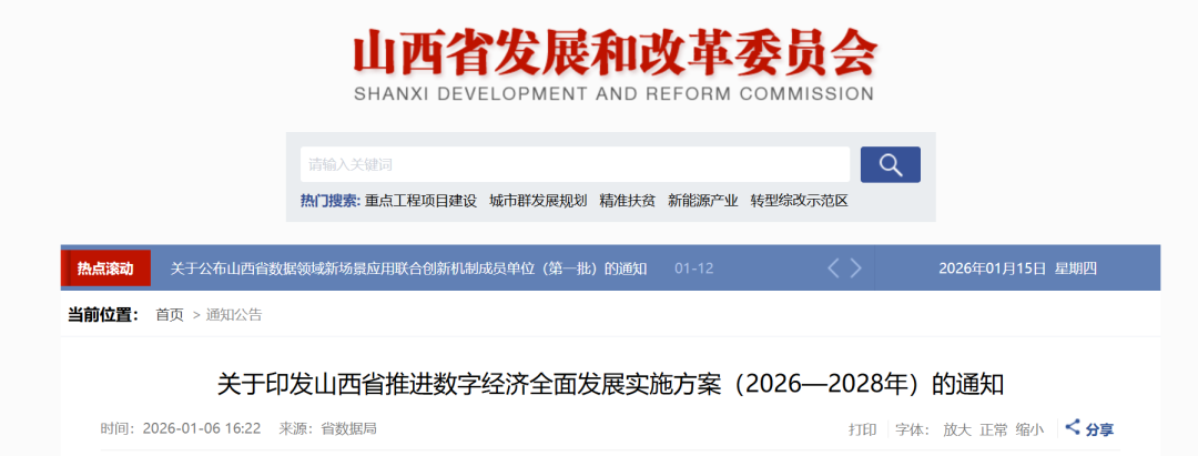 关于印发山西省推进数字经济全面发展实施方案(2026—2028年)的通知