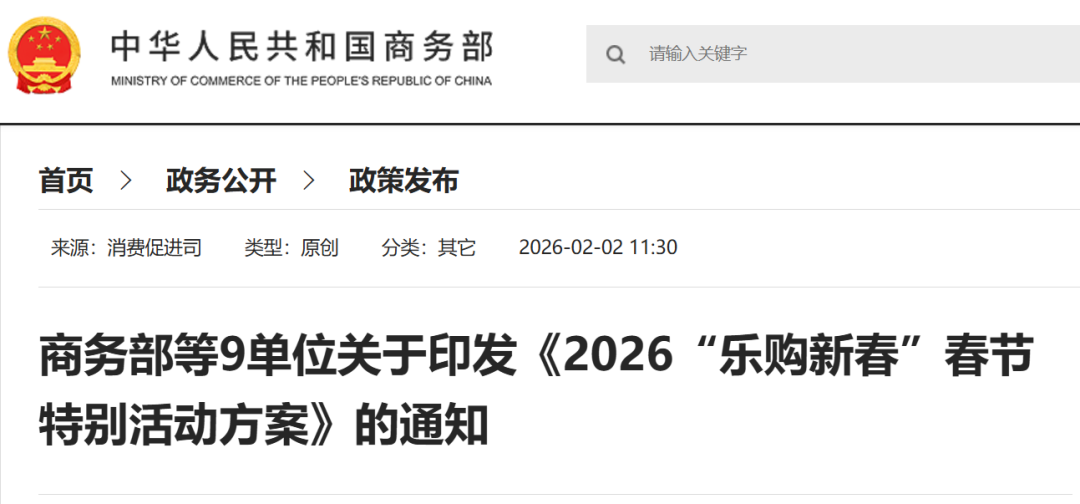 商务部等9单位关于印发《2026“乐购新春”春节特别活动方案》的通知