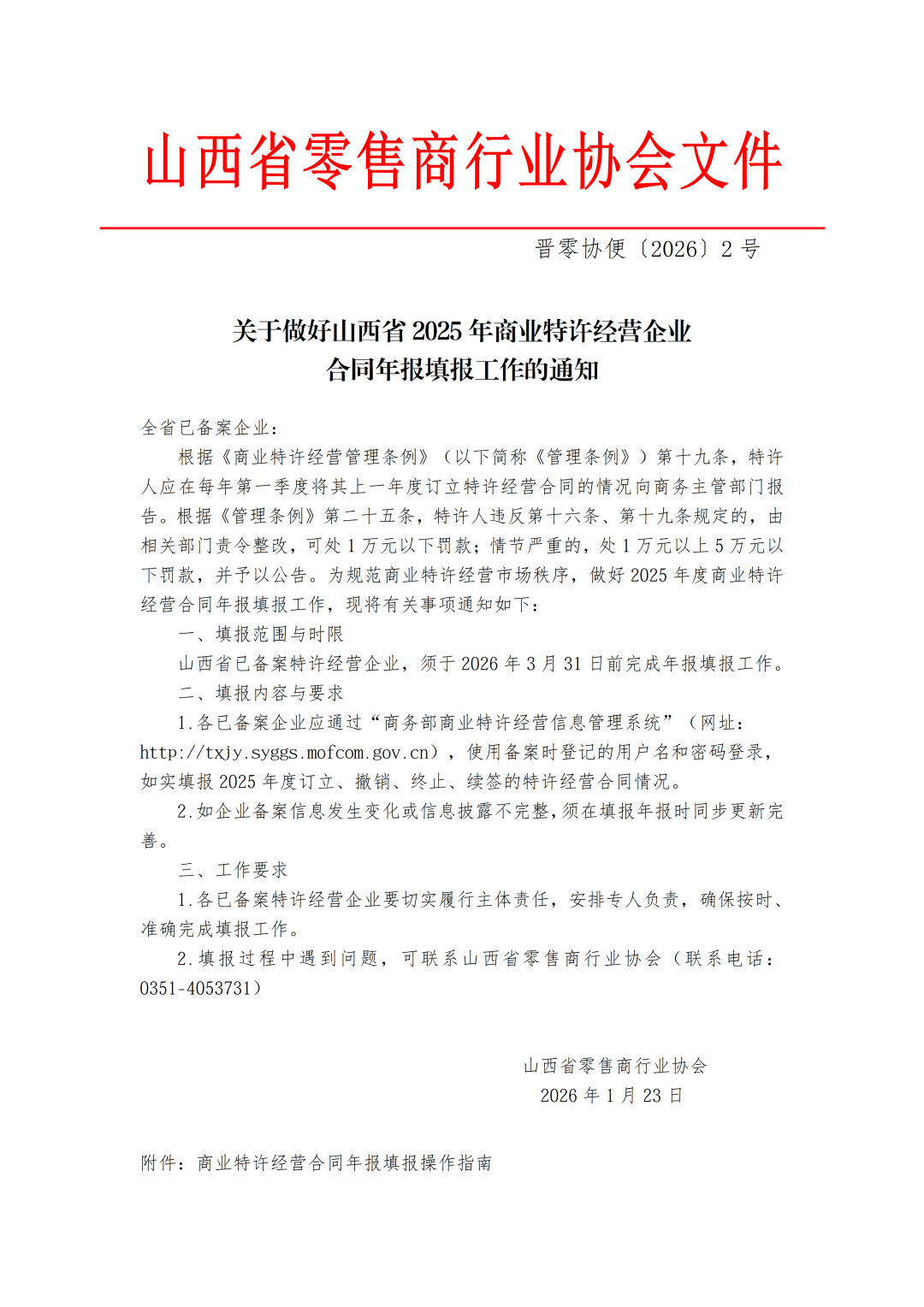 关于做好山西省2025年商业特许经营企业合同年报填报工作的通知
