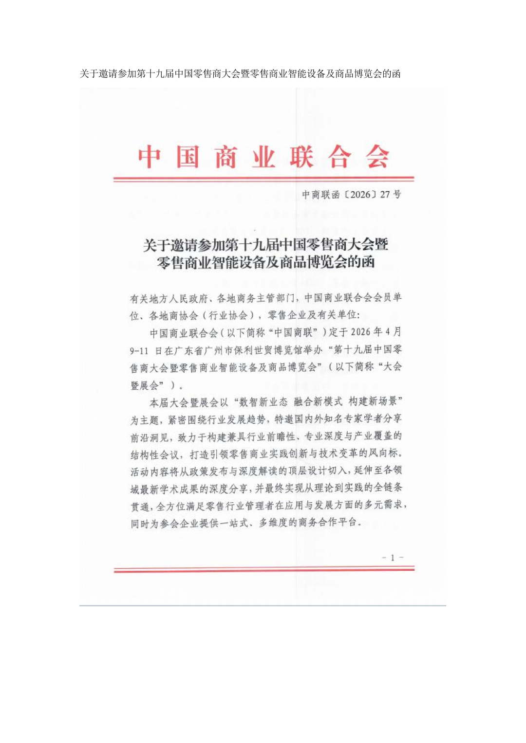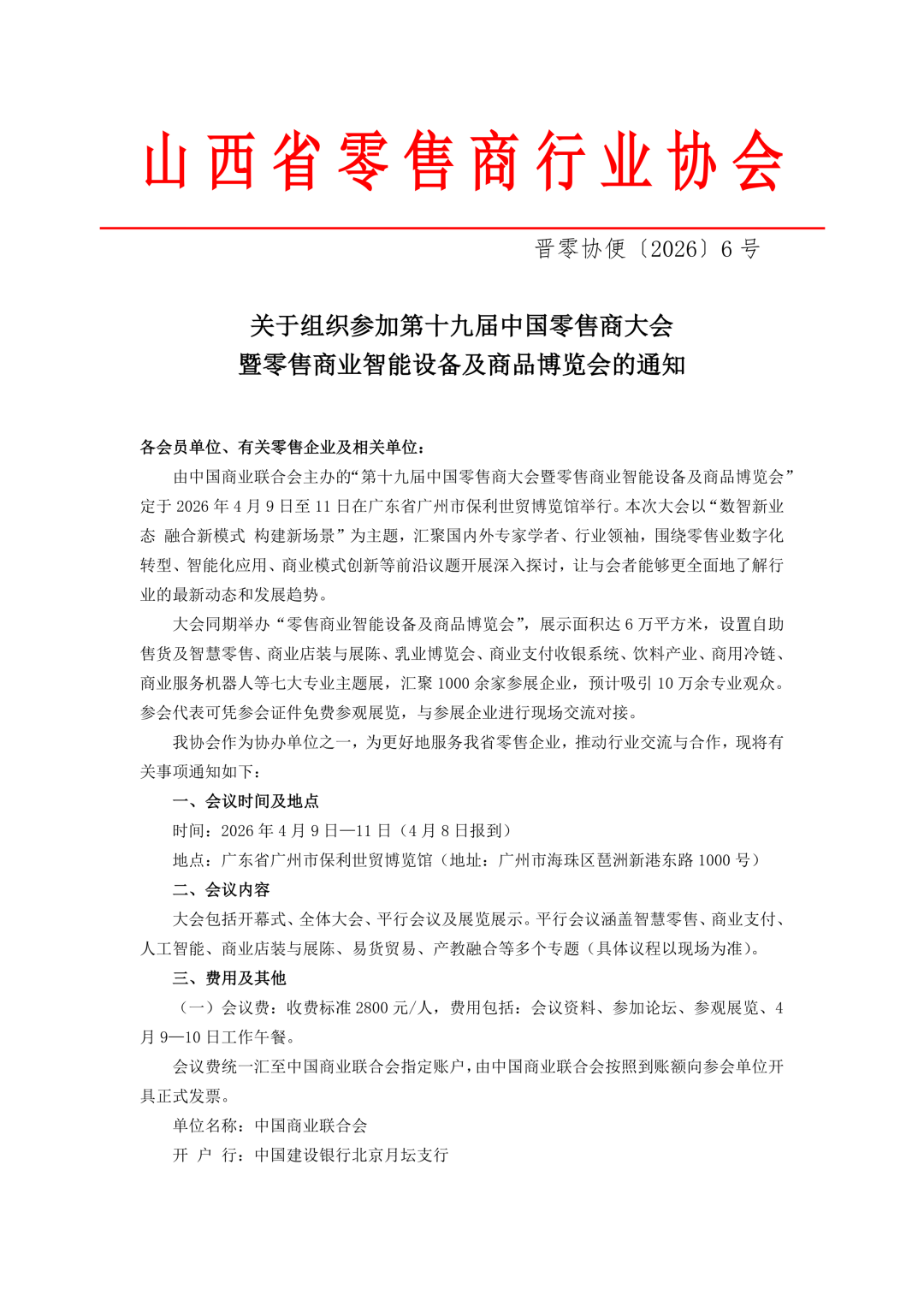 关于组织参加第十九届中国零售商大会暨零售商业智能设备及商品博览会的通知