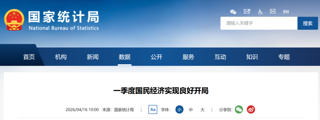 初步核算,一季度国内生产总值334193亿元,按不变价格计算,同比增长5.0%,比上年四季度加快0.5个百分点。分产业看,第一产业增加值11941亿元,同比增长3.8%;第二产业增加值116135亿元,增长4.9%;第三产业增加值206117亿元,增长5.2%。从环比看,一季度国内生产总值增长1.3%。