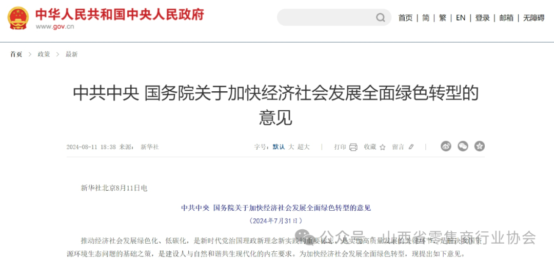 中共中央 国务院关于加快经济社会发展全面绿色转型的意见
