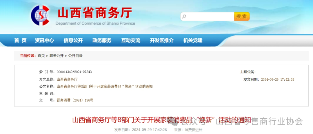 山西省商务厅等8部门关于开展家装消费品“焕新”活动的通知