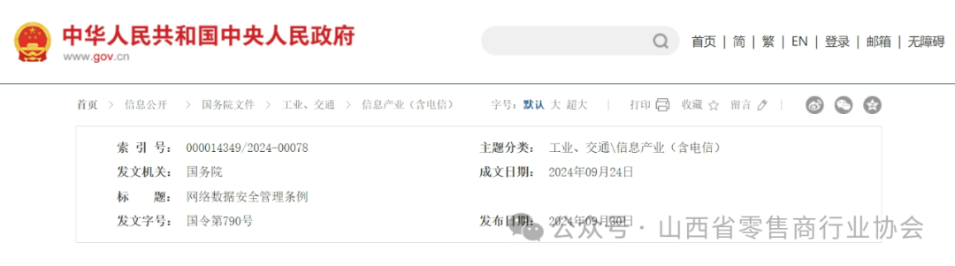 《网络数据安全管理条例》已经2024年8月30日国务院第40次常务会议通过,现予公布,自2025年1月1日起施行。总理 李强