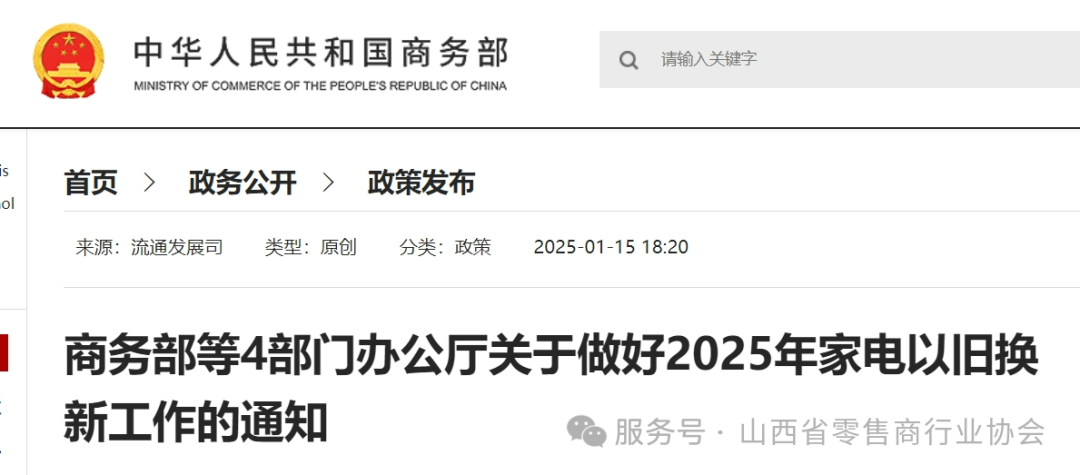 商务部等4部门办公厅关于做好2025年家电以旧换新工作的通知